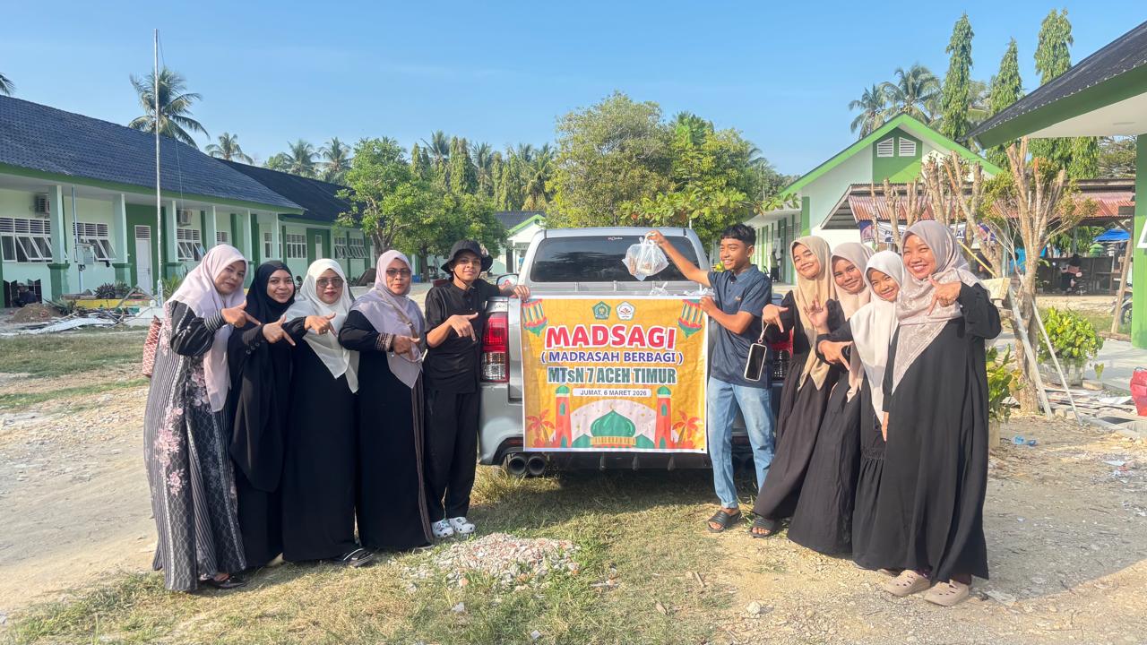 Program MADSAGI (Madrasah Berbagi) merupakan salah satu kegiatan sosial yang rutin dilaksanakan oleh MTsN 7 Aceh Timur. Kegiatan ini bertujuan untuk menumbuhkan nilai-nilai kepedulian sosial serta mempererat hubungan antara madrasah dengan masyarakat sekitar. Melalui kegiatan berbagi takjil ini, diharapkan keberadaan madrasah dapat memberikan manfaat dan kebahagiaan bagi masyarakat.
